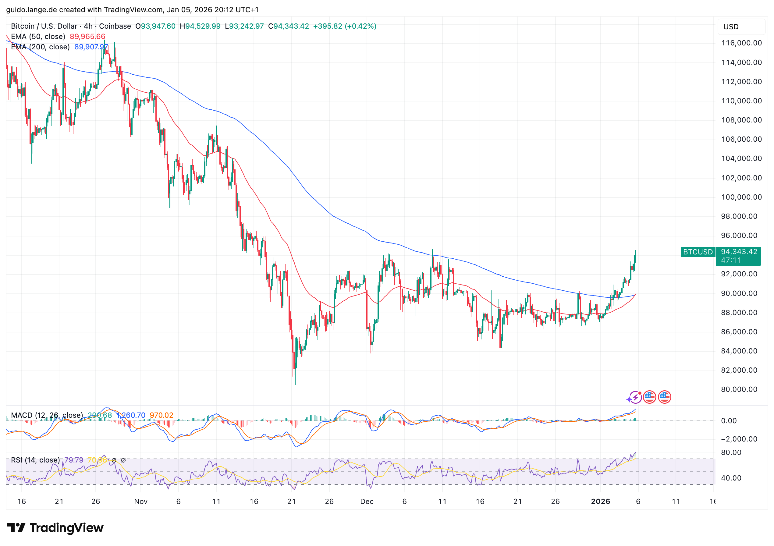 Der 200-Tage-EMA gehört zu den meistbeachteten Indikatoren in der technischen Analyse. Er trennt langfristig bullische von bärischen Marktphasen. Solange sich der Preis darunter befindet, spricht man häufig von einer Phase struktureller Schwäche. Genau das war bei Bitcoin seit Herbst der Fall.